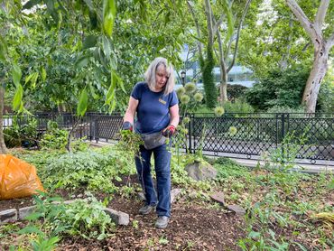 Thanks to K, Sally, and the wonderful volunteers for moving bricks, removing weeds, cleaning up this space, and planting to make a special place.