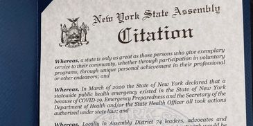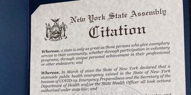 A Citation awarded by the NYS Assembly in 2021 states: “Through this work you have established a strong and lasting legacy as an Advocate for constituents...that has greatly inspired the next generation... thank you for your dedicated and tireless service to our city, the state, and our nation"